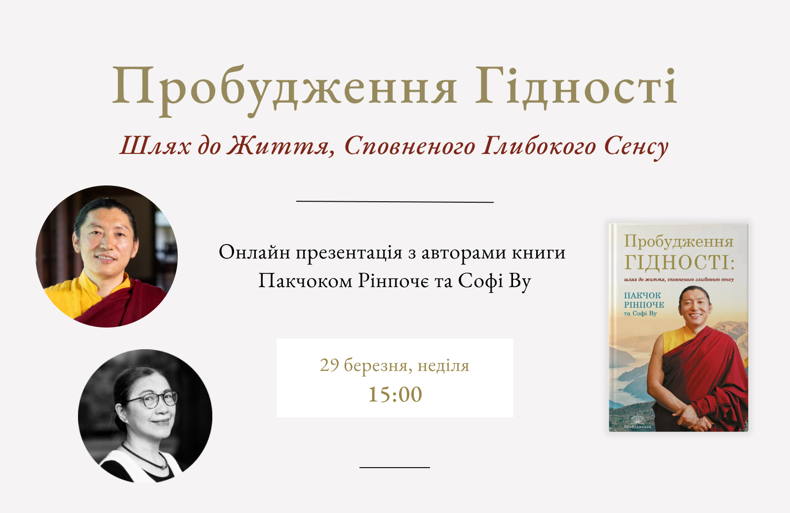 FROM Відкрита онлайн-зустріч із Пакчоком Рінпоче та Софі Ву 10 Бер, 2026 З нагоди виходу українського перекладу книги «Пробудження гідності».